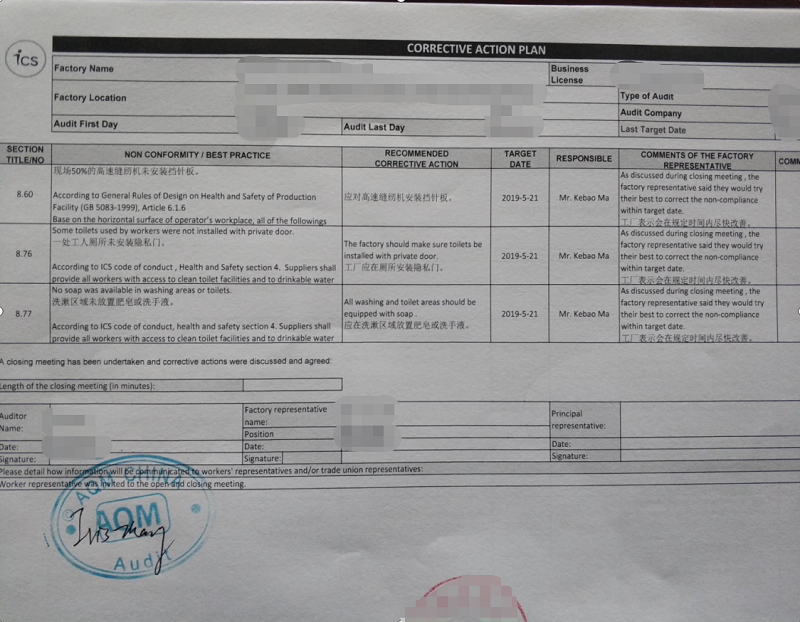 ICS验厂审核报告模板: