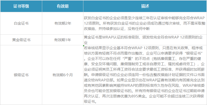 WRAP证书等级: